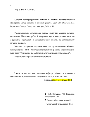 Методические указания предназначены для студентов очного обучения по направлению 180301 Химическая технология и профилю (специализации) подготовки "Технология переработки пластических масс и эластомеров".