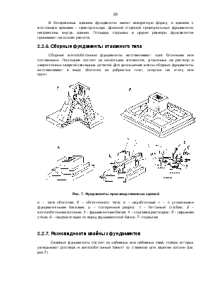Сборные железобетонные фундаменты изготавливают одно блочными или составными. Последние состоят из нескольких элементов, уложенных на раствор и закрепленных сваркой закладных деталей. Для уменьшения массы сборные фундаменты изготавливают в виде оболочек из ребристых плит, опертых на плиту или грунт.