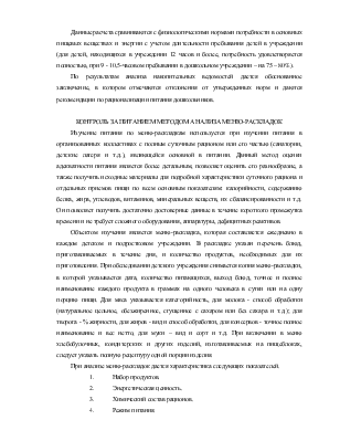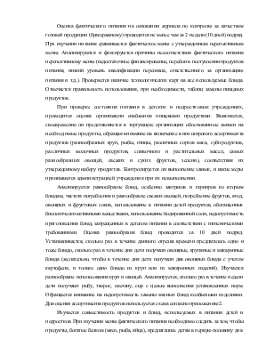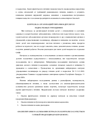 Изучение бракеражного журнала позволяет также оценить эпидемическую безопасность фактического питания детей и подростков. Не допускается повторение одного и того же блюда не только в течение одного дня, но и ближайших дней. Для анализа соблюдения сроков реализации продуктов возможно сопоставление данных поступления продуктов питания по сопровождающим документам
