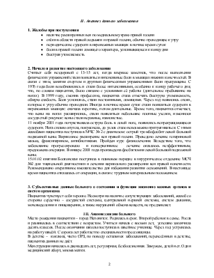 II. Анамнез данного заболевания
