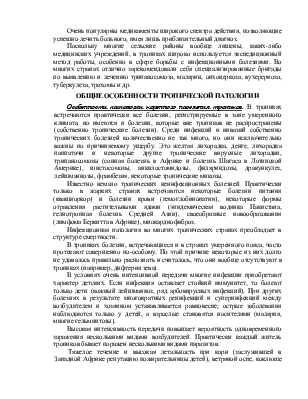 Территориальное распространение болезни – явление динамичное. Ареалы болезней непрерывно изменяются, главным образом под влиянием хозяйственной деятельности человека. Современная география большинства тропических болезней изучена еще недостаточно.