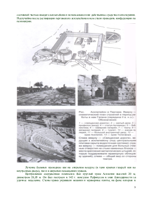 Асклепейон в Пергаме был сооружен в IV в. до н.э. в горной долине, известной благодаря целебным свойствам «священного» источника. На протяжении столетий он постоянно расширялся и неоднократно разрушался во время военных действий. В III в. до н.э. его строения были облицованы великолепным мрамором. Во II в. до н.э. на его территории появились новые помещения для лечения больных, каменный фонтан священного источника и лечебные ванны.