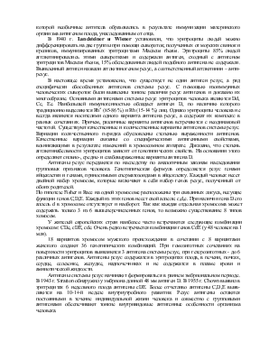 В 1940 г. Landsteiner и Wiener установили, что эритроциты людей можно дифференцировать на две группы при помощи сывороток, полученных от морских свинок и кроликов, иммунизированных эритроцитами Macacus rhesus. Эритроциты 85% людей агглютинировались этими сыворотками и содержали антиген, сходный с антигеном эритроцитов Macacus rhesus, 15% обследованных людей подобного антигена не содержали. Выявленный антиген назвали агглютиногеном резус, а соответственный агглютинин – анти-резус.