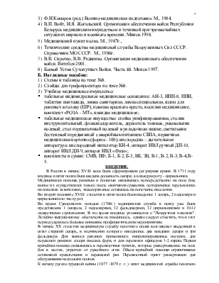 7) В.В. Сиротко, В.В. Редненко. Организация медицинского обеспечения войск. Витебск 2001.