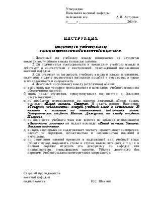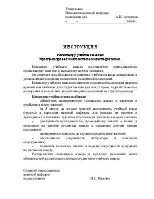 2. Он подчиняется преподавателю и командиру учебного взвода и действует в соответствии с инструкцией, утвержденной начальником военной кафедры.