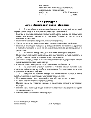 · немедленно докладывать начальнику кафедры обо всех происшествиях на кафедре;