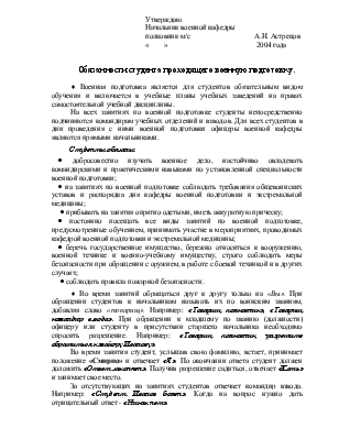 · знать места и продолжительность учебных занятий на военной кафедре;
