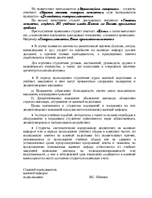 Вооруженных Сил Республики Беларусь и «Положением о военных кафедрах»