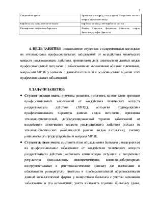 4. ЦЕЛЬ ЗАНЯТИЯ: ознакомление студентов с современными взглядами на этиопатогенез профессиональных заболеваний от воздействия химических веществ раздражающего действия, принципами диф. диагностики данных видов профессиональной патологии с заболеваниями вызванными общими причинами, вопросами МРЭК у больных с данной патологией и особенностями терапии этих профессиональных заболеваний.