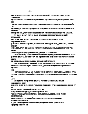 В наше время интернационализации всех научных знаний и медицинских в частности преподавание истории медицины не может ограничиваться рамками нашей страны,Республики Беларусь или даже СНГ, она не может отрываться от всемирной истории культуры и медицины,поэтому при изложении курса будут учтены следующие особенности: