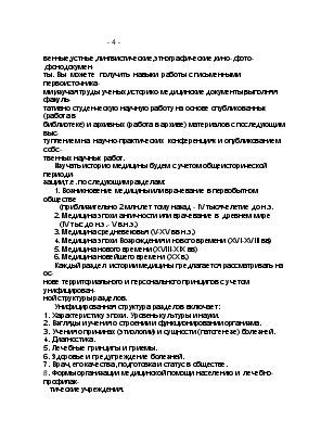 - 3 последовательности,эти сведения в своей совокупности не могут заменить целостного и систематизированного курса истории,в котором на базе исторического и логического методов изучается развитие направлений и теорий медицины как процесса всемирно-исторического,закладываются основы историко-медицинского образования и воспитания студента-медика.