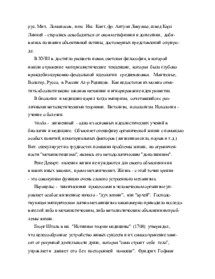 К подобным  виталистическим  учениям  можно еще отнести "животный магнетизм" Франца Месмера,  "броунизм" Дж.Броуна. Общими для естествоиспытателей были  абсолютизация  законов механики и игнорирование идеи развития.