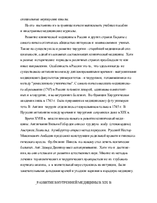 Становление клинической медицины как отрасли науки в России  и  в других странах Европы относится к XVIII в.  В ее возникновении важную роль сыграли преемственность в развитии научных знаний, взаимовлияние культуры  и науки различных стран.  Способствовали этому объективный ход эволюции общества, развитие промышленности, расширение торговли и международных связей,  формирование мирового рынка. Все это благоприятствовало научному прогрессу.