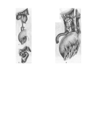 1) протоки сшивают между собой; мобилизуют желчный пузырь и подшивают рассеченную его стенку вокруг этих протоков (рис. 135, а, б, в, г, д, е) при условии проходимости пузырного протока и дистального отдела общего желчного протока;
