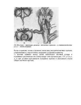 Когда сохранены только отдельные (несколько) внутрипеченочные протоки, открывающиеся у ворот печени, возможны следующие варианты: