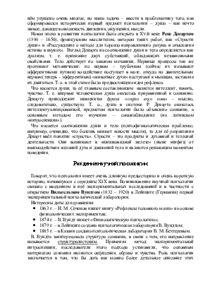 Новая эпоха в развитии психологии была открыта в ХVII веке Рене