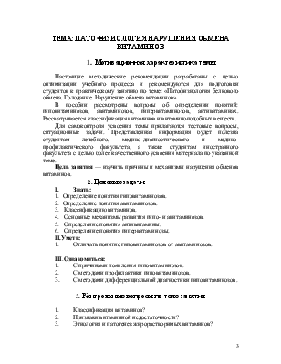 Патофизиология нарушения обмена витаминов. Понятие о витаминах. Признаки витаминной недостаточности. Этиология, патогенез, клинические признаки и профилактика гипо- и авитаминозов