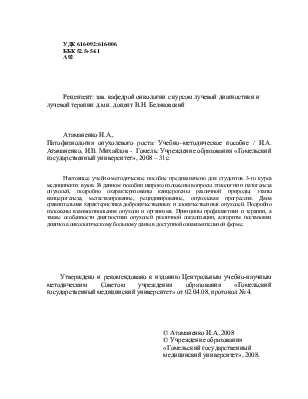 Патофизиология опухолевого роста: Учебно–методическое пособие / И.А. Атаманенко, И.В. Михайлов -  Гомель: Учреждение образования «Гомельский государственный университет», 2008 – 31с.