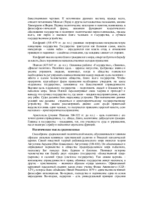Руссо придерживался договорной теории происхождения государства: свобода и равенство – высшие ценности государства, а политика – сосредоточение общественных интересов. Государство создано для охраны частной собственности, а частная собственность – общественное право и никто не должен обладать неограниченным право накапливать собственность.