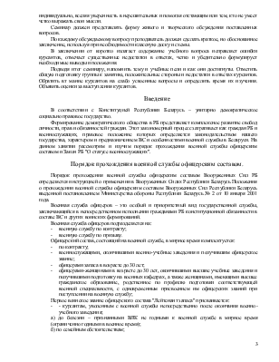 Для проведения семинарских занятий по методике воспитательной работы на тему № 3 "Порядок прохождения военной службы офицерским составом. Закон Республики Беларусь О статусе военнослужащих".