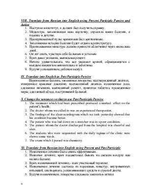 Перенесенная болезнь, заказанное лекарство, подтвержденный диагноз, измеренное кровяное давление, поставленный диагноз, назначенная доза, сделанная инъекция, выписанный рецепт, принятая таблетка, проведенные меры, сделанный обход, поступивший больной.