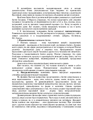 2. К теистическому толкованию бытия примыкает пантеистическое. Развивалось представление, что Бог растворяется в природе, сливается с ней в живых существах и в неодушевленных стихиях. Д.Бруно, Б.Спиноза, П.С.Лаплас.