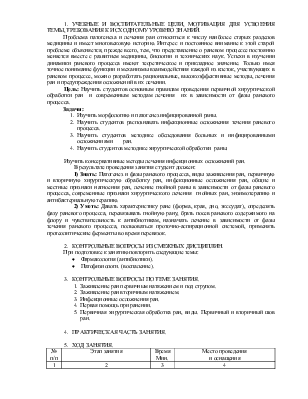 Цель: Научить студентов основным правилам проведения первичной хирургической обработки ран  и современным методам лечения  их в зависимости от фазы раневого процесса.