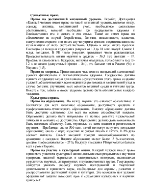 Право на безопасность и личную неприкосновенность. Это самое актуальное право человека. Ежегодно сотни тысяч людей погибают от преступлений. В последнее время люди стали чувствовать себя неуверенными и дома и на улице. Международные документы запрещают жестокое, бесчеловечное обращение, включая пытки. Пытки не ушли из жизни современного общества. Если раньше им предшествовали какие-то законные процедуры, то сейчас это делается тайно. Цель пытки – сломать сильную личность, чтобы держать в страхе и терроризировать все общество. Сломленный человек создает вокруг себя поле ужаса и устрашения.