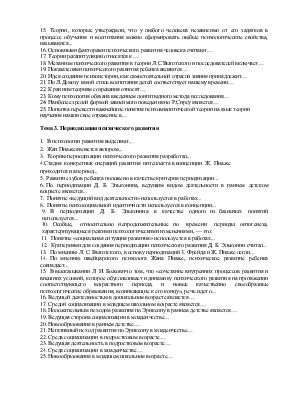 14. По мнению швейцарского психолога Жана Пиаже, психическое развитие ребенка совпадает...