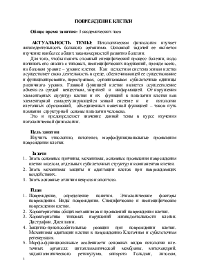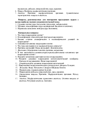 1.  Знать основные причины, механизмы, основные проявления повреждения клетки в целом, отдельных субклеточных структур и компонентов клетки.