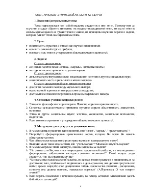 2. Цель: Познакомить студентов с этико-философскими концепциями Древней Индии и Древнего Китая как отправной точкой развития этической мысли.