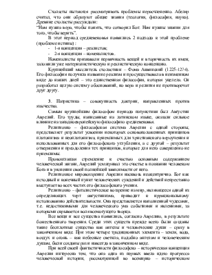 Крупнейший мыслитель схоластики – Фома Аквинский (1225-1274). Его философия получила название реализм и просуществовала в неизменном виде до наших дней – это единственная философия, которая уцелела. Он разработал целую систему обоснований, но вера и религия не противоречат друг другу.