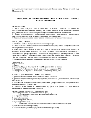 1. Знать характеристику класса Cestoidea, географическое распространение, особенности морфологии, циклы развития, пути заражения человека, патогенное действие ленточных червей и профилактику цестодозов.