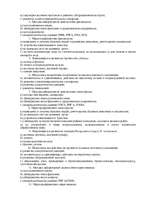 20. Меры профилактики мочеполового шистосомоза: а) выявление и лечение больных людей, уничтожение больных животных и моллюсков; б) устройство канализации и туалетов; в) мероприятия по улучшению санитарно-гигиенических условий жизни населения; г) не купаться в водоемах, заселенных моллюсками.