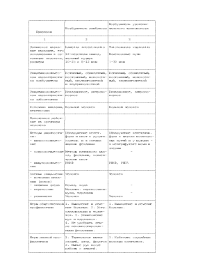 При изучении микропрепаратов нарисовать на доске объекты, которые студенты должных найти под микроскопом, объяснить, как оформить протокол, делать подписи и обозначения к рисунками. Студенты заполняют таблицу по эпидемиологической характеристике и дифференциальным отличиям патогенных жгутиковых.