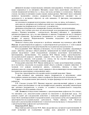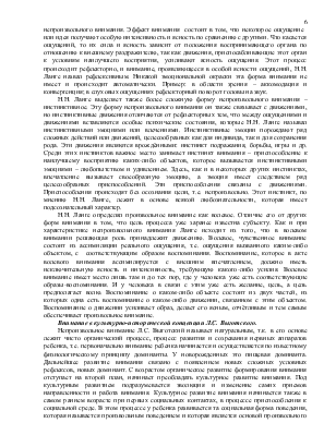 Непроизвольное внимание Л.С. Выготский называет натуральным, т.к. в его основе лежит чисто органический процесс, процесс развития и созревания нервных аппаратов ребенка, т.е. первоначально внимание ребенка начинается и осуществляется по известному физиологическому принципу доминанты. У новорожденных это пищевая доминанта. Дальнейшее развитие внимания связано с появлением новых сложных условных рефлексов, новых доминант. С возрастом органическое развитие формирования внимания отступает на второй план, начинает преобладать культурное развитие внимания. Под культурным развитием подразумевается эволюция и изменение самих приемов направленности и работа внимания. Культурное развитие внимания начинается также в самом раннем возрасте при первых социальных контактах, в процессе приспособления к социальной среде. В этом процессе у ребенка развивается та социальная форма поведения, которая называется произвольным поведением и которая является основой произвольного внимания. С.Л. Выготский считает, что корни произвольного внимания надо искать не внутри, а вне личности ребенка, т.к. окружающие ребенка люди начинают направлять его внимание с помощью различных внешних стимулов, руководят его вниманием, учат подчинять внимание своей власти и этим самым дать в руки ребенка те средства, с помощью которых он в последствии сам овладеет своим вниманием. Произвольное внимание имеет социальную природу. Как формируется произвольное внимание? Ребенок должен сначала подчиняться приказу взрослого, чтобы потом подчиняться собственной словесной инструкции. Если ребенок научится подчиняться приказу, он научится также подчиняться самоприказу, т.к. он имеет опосредованный характер.