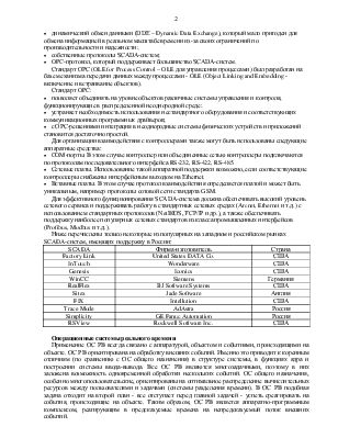 На SCADA-уровне размещены компьютеры, выполняющие системные функции, а также функции www-серверов, серверов баз данных, рабочих станций и т.д. Эти компьютеры обеспечивают передачу, визуализацию, анализ и хранение всей поступившей информации, а также ее взаимодействие с оператором.