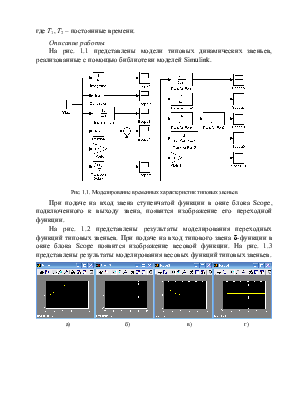 На рис. 1.1 представлены модели типовых динамических звеньев, реализованные с помощью библиотеки моделей Simulink.