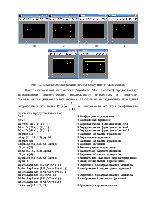 Пакет символьной математики (Symbolic Math Toolbox) предоставляет возможности аналитического исследования временных и частотных характеристик динамических звеньев. Программа исследования поведения апериодического звена  в зависимости от его коэффициента усиления представлена ниже.