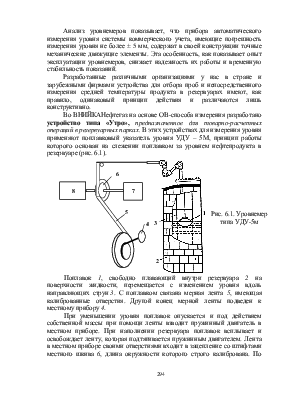 Уровень жидкости отмечается непосредственно у резервуара четырехзначным отчетным устройством 15 с точностью до 1 мм, и отсчет передается на расстояние устройством дистанционной передачи 16.