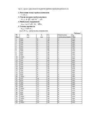 Формулы для определения высоты подъема, расстояний между трубоукладчиками, максимального изгибающего момента, максимальных нормальных напряжений приведены в таблице 2 и таблице 3.