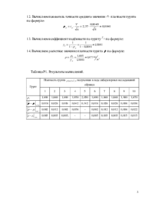 2. Вычисляем модуль разности среднего арифметического и частного значений плотности грунта . Результаты расчёта заносим в Таблицу Р1.