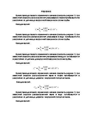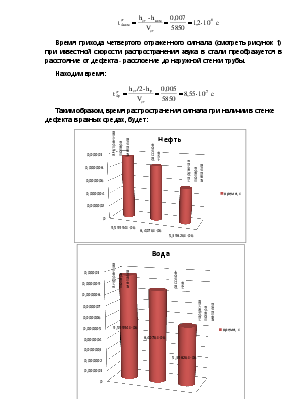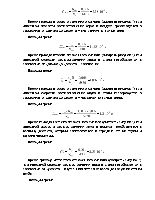 Таким образом, время распространения сигнала при наличии в стенке дефекта в разных средах, будет: