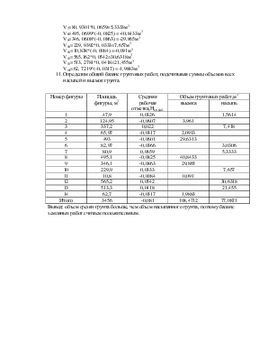 11. Определим общий баланс грунтовых работ, подсчитывая суммы объемов всех насыпей и выемок грунта.