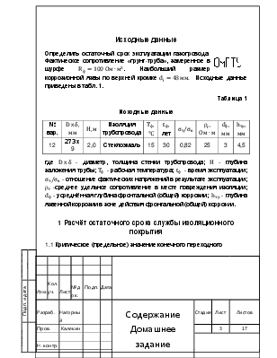 1 Расчёт остаточного срока службы изоляционного покрытия. 3
