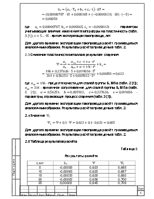 Для другого времени эксплуатации газопровода расчёт производиться аналогичным образом. Результаты расчёта приведены в табл. 2.