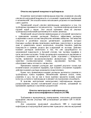 В практике эксплуатации нефтепроводов известны следующие способы очистки их внутренней поверхности от отложений: термический, химический и механический. Эти способы можно использовать раздельно и в комбинации один с другим.