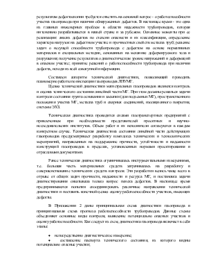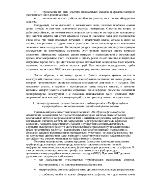 В принципиальной схеме комплексной диагностики (Приложение 1) выполнены три основных уровня, необходимые для анализа состояния трубопровода, - это системы базы знаний и обследований; технические методы и средства для реализации диагностики; система принятия решений по результатам инспекции и отдельно - раздел о диагностике индивидуального газопровода. Такая постановка определена тем, что основная задача для газопровода - это поставка газа в конечный пункт на достаточном уровне надежности. Поэтому необходимо так организовать работу по диагностике, чтобы получить оценку работоспособности и надежности конкретного
