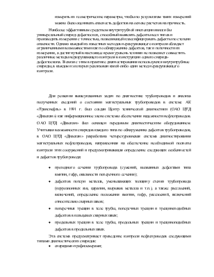 В отрасли разработана комплексная система диагностики, созданная на основе анализа практического отечественного и зарубежного опыта, выполнения научно-исследовательских работ (НИР) и натурных обследований. Создание такой системы позволило перейти от отдельных разноплановых работ по диагностике, осуществленных на ряде предприятий, к комплексной инспекции в рамках отрасли, что дает возможность поддерживать необходимый уровень надежности газотранспортной системы в целом и предоставляет исходные материалы для выполнения реконструкции газопроводов.