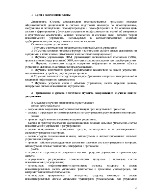 Дисциплина «Основы автоматизации производственных процессов» является общеинженерной дисциплиной в системе подготовки инженера по проектированию, сооружению и эксплуатации газонефтепроводов и газонефтехранилищ. Ее основная цель состоит в формировании у будущего специалиста профессиональных знаний об аппаратном и программном обеспечении, сетевых технологиях и системах связи, методах теории автоматического управления, используемых в автоматизированных системах трубопроводного транспорта, и навыков их использования.